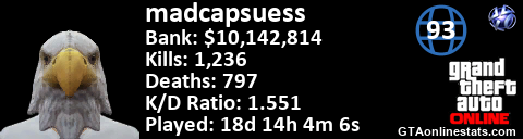 [URL=http://GTAonlinestats.com/showplayer/madcapsuess][IMG]http://GTAonlinestats.com/dmsignature/madcapsuess/sig.png[/IMG][/URL]