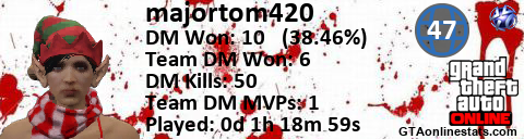 [URL=http://GTAonlinestats.com/showplayer/majortom420/2][IMG]http://GTAonlinestats.com/dmsignature/majortom420/2/sig.png[/IMG][/URL]