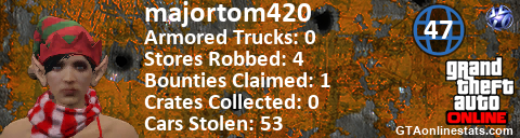 [URL=http://GTAonlinestats.com/showplayer/majortom420/2][IMG]http://GTAonlinestats.com/crimesignature/majortom420/2/sig.png[/IMG][/URL]