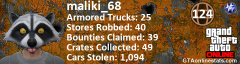 <a href="http://GTAonlinestats.com/showplayer/maliki_68"><img src="http://GTAonlinestats.com/randomsignature/maliki_68/sig.png" alt="Maliki_68" border="0" /></a>