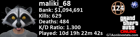 <a href="http://GTAonlinestats.com/showplayer/maliki_68"><img src="http://GTAonlinestats.com/signature/maliki_68/sig.png" alt="Maliki_68" border="0" /></a>