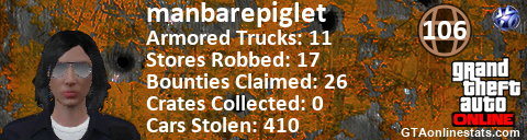 [URL=http://GTAonlinestats.com/showplayer/manbarepiglet][IMG]http://GTAonlinestats.com/crimesignature/manbarepiglet/sig.png[/IMG][/URL]