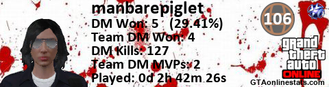 [URL=http://GTAonlinestats.com/showplayer/manbarepiglet][IMG]http://GTAonlinestats.com/dmsignature/manbarepiglet/sig.png[/IMG][/URL]