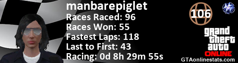 [URL=http://GTAonlinestats.com/showplayer/manbarepiglet][IMG]http://GTAonlinestats.com/racesignature/manbarepiglet/sig.png[/IMG][/URL]