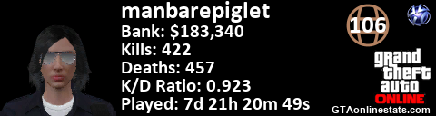 [URL=http://GTAonlinestats.com/showplayer/manbarepiglet][IMG]http://GTAonlinestats.com/randomsignature/manbarepiglet/sig.png[/IMG][/URL]