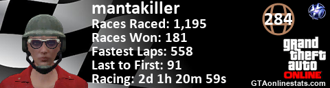 <a href="http://GTAonlinestats.com/showplayer/mantakiller"><img src="http://GTAonlinestats.com/racesignature/mantakiller/sig.png" alt="mantakiller" border="0" /></a>
