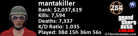 <a href="http://GTAonlinestats.com/showplayer/mantakiller"><img src="http://GTAonlinestats.com/randomsignature/mantakiller/sig.png" alt="mantakiller" border="0" /></a>