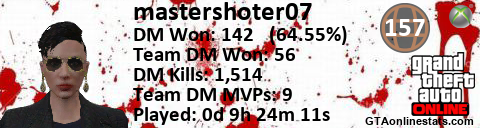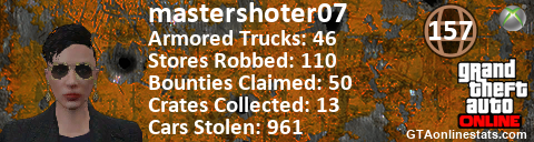 <a href="http://GTAonlinestats.com/showplayer/mastershoter07"><img src="http://GTAonlinestats.com/dmsignature/mastershoter07/sig.png" alt="mastershoter07" border="0" /></a>