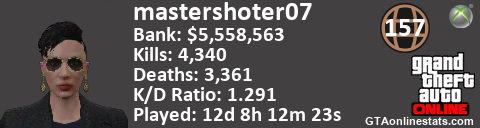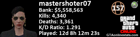 <a href="http://GTAonlinestats.com/showplayer/mastershoter07"><img src="http://GTAonlinestats.com/signature/mastershoter07/sig.png" alt="mastershoter07" border="0" /></a>