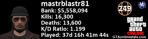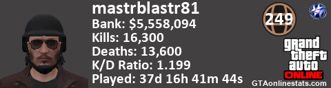 <a href="http://GTAonlinestats.com/showplayer/mastrblastr81"><img src="http://GTAonlinestats.com/signature/mastrblastr81/sig.png" alt="MastrBlastr81" border="0" /></a>