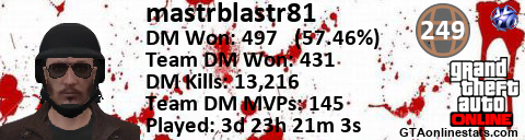 [URL=http://GTAonlinestats.com/showplayer/mastrblastr81][IMG]http://GTAonlinestats.com/dmsignature/mastrblastr81/sig.png[/IMG][/URL]