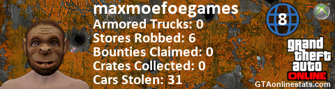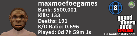 <a href="http://GTAonlinestats.com/showplayer/maxmoefoegames"><img src="http://GTAonlinestats.com/randomsignature/maxmoefoegames/sig.png" alt="maxmoefoegames" border="0" /></a>