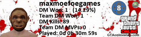 <a href="http://GTAonlinestats.com/showplayer/maxmoefoegames"><img src="http://GTAonlinestats.com/dmsignature/maxmoefoegames/sig.png" alt="maxmoefoegames" border="0" /></a>