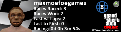 [URL=http://GTAonlinestats.com/showplayer/maxmoefoegames][IMG]http://GTAonlinestats.com/racesignature/maxmoefoegames/sig.png[/IMG][/URL]