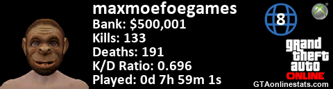 <a href="http://GTAonlinestats.com/showplayer/maxmoefoegames"><img src="http://GTAonlinestats.com/signature/maxmoefoegames/sig.png" alt="maxmoefoegames" border="0" /></a>