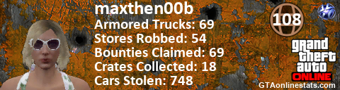 [URL=http://GTAonlinestats.com/showplayer/maxthen00b][IMG]http://GTAonlinestats.com/randomsignature/maxthen00b/sig.png[/IMG][/URL]