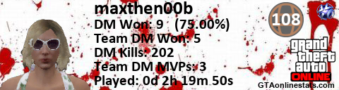 [URL=http://GTAonlinestats.com/showplayer/maxthen00b][IMG]http://GTAonlinestats.com/dmsignature/maxthen00b/sig.png[/IMG][/URL]