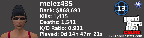 <a href="http://GTAonlinestats.com/showplayer/melez435/2"><img src="http://GTAonlinestats.com/dmsignature/melez435/2/sig.png" alt="melez435" border="0" /></a>