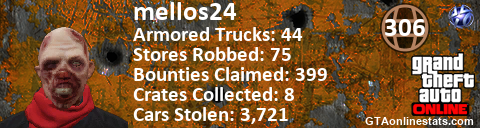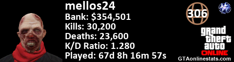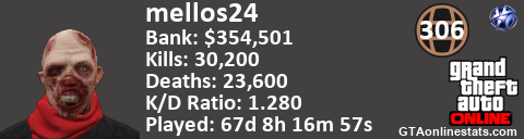 <a href="http://GTAonlinestats.com/showplayer/mellos24"><img src="http://GTAonlinestats.com/randomsignature/mellos24/sig.png" alt="mellos24" border="0" /></a>