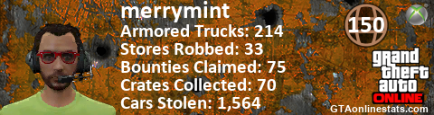 [URL=http://GTAonlinestats.com/showplayer/merrymint][IMG]http://GTAonlinestats.com/crimesignature/merrymint/sig.png[/IMG][/URL]