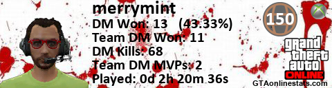 [URL=http://GTAonlinestats.com/showplayer/merrymint][IMG]http://GTAonlinestats.com/dmsignature/merrymint/sig.png[/IMG][/URL]