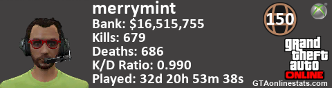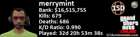 [URL=http://GTAonlinestats.com/showplayer/merrymint][IMG]http://GTAonlinestats.com/greysignature/merrymint/sig.png[/IMG][/URL]