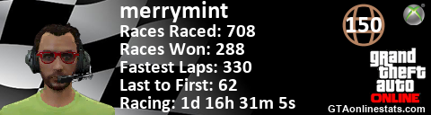 [URL=http://GTAonlinestats.com/showplayer/merrymint][IMG]http://GTAonlinestats.com/racesignature/merrymint/sig.png[/IMG][/URL]
