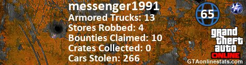 <a href="http://GTAonlinestats.com/showplayer/messenger1991"><img src="http://GTAonlinestats.com/crimesignature/messenger1991/sig.png" alt="messenger1991" border="0" /></a>