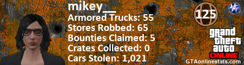 [URL=http://GTAonlinestats.com/showplayer/mikey__][IMG]http://GTAonlinestats.com/signature/mikey__/sig.png[/IMG][/URL]