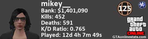 <a href="http://GTAonlinestats.com/showplayer/mikey__"><img src="http://GTAonlinestats.com/signature/mikey__/sig.png" alt="mikey__" border="0" /></a>