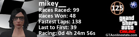 <a href="http://GTAonlinestats.com/showplayer/mikey__"><img src="http://GTAonlinestats.com/racesignature/mikey__/sig.png" alt="mikey__" border="0" /></a>