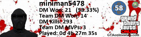 <a href="http://GTAonlinestats.com/showplayer/miniman5478"><img src="http://GTAonlinestats.com/randomsignature/miniman5478/sig.png" alt="miniman5478" border="0" /></a>