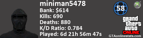 [URL=http://GTAonlinestats.com/showplayer/miniman5478][IMG]http://GTAonlinestats.com/signature/miniman5478/sig.png[/IMG][/URL]