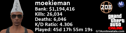 <a href="http://GTAonlinestats.com/showplayer/moekieman"><img src="http://GTAonlinestats.com/randomsignature/moekieman/sig.png" alt="moekieman" border="0" /></a>