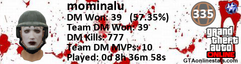 [URL=http://GTAonlinestats.com/showplayer/mominalu][IMG]http://GTAonlinestats.com/dmsignature/mominalu/sig.png[/IMG][/URL]