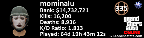 <a href="http://GTAonlinestats.com/showplayer/mominalu"><img src="http://GTAonlinestats.com/randomsignature/mominalu/sig.png" alt="mominalu" border="0" /></a>