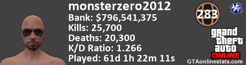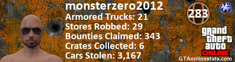 [URL=http://GTAonlinestats.com/showplayer/monsterzero2012][IMG]http://GTAonlinestats.com/randomsignature/monsterzero2012/sig.png[/IMG][/URL]