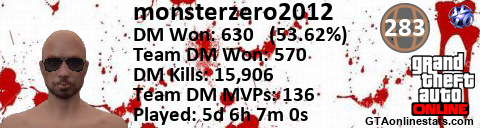 <a href="http://GTAonlinestats.com/showplayer/monsterzero2012"><img src="http://GTAonlinestats.com/dmsignature/monsterzero2012/sig.png" alt="monsterzero2012" border="0" /></a>