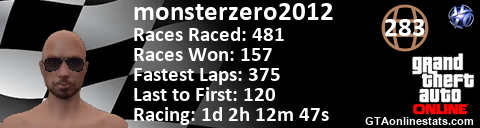 [URL=http://GTAonlinestats.com/showplayer/monsterzero2012][IMG]http://GTAonlinestats.com/racesignature/monsterzero2012/sig.png[/IMG][/URL]