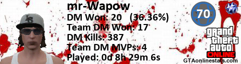 <a href="http://GTAonlinestats.com/showplayer/mr-Wapow"><img src="http://GTAonlinestats.com/signature/mr-Wapow/sig.png" alt="mr-Wapow" border="0" /></a>