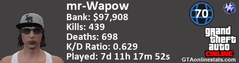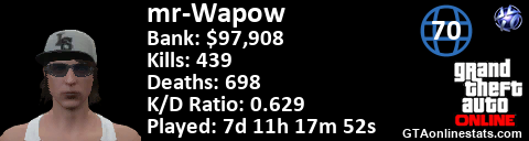 <a href="http://GTAonlinestats.com/showplayer/mr-Wapow"><img src="http://GTAonlinestats.com/randomsignature/mr-Wapow/sig.png" alt="mr-Wapow" border="0" /></a>