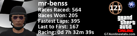 <a href="http://GTAonlinestats.com/showplayer/mr-benss"><img src="http://GTAonlinestats.com/racesignature/mr-benss/sig.png" alt="Mr-benss" border="0" /></a>