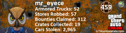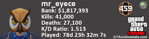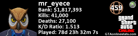 <a href="http://GTAonlinestats.com/showplayer/mr_eyece"><img src="http://GTAonlinestats.com/randomsignature/mr_eyece/sig.png" alt="Mr_eYeCe" border="0" /></a>
