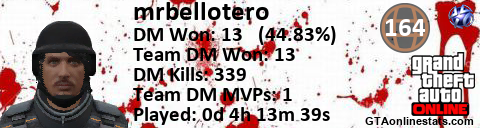 <a href="http://GTAonlinestats.com/showplayer/mrbellotero"><img src="http://GTAonlinestats.com/greysignature/mrbellotero/sig.png" alt="mrbellotero" border="0" /></a>