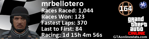 <a href="http://GTAonlinestats.com/showplayer/mrbellotero"><img src="http://GTAonlinestats.com/racesignature/mrbellotero/sig.png" alt="mrbellotero" border="0" /></a>