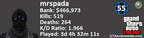 <a href="http://GTAonlinestats.com/showplayer/mrspada"><img src="http://GTAonlinestats.com/dmsignature/mrspada/sig.png" alt="MrSpada" border="0" /></a>