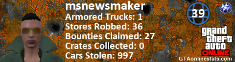 [URL=http://GTAonlinestats.com/showplayer/msnewsmaker][IMG]http://GTAonlinestats.com/signature/msnewsmaker/sig.png[/IMG][/URL]