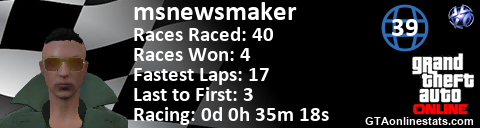 <a href="http://GTAonlinestats.com/showplayer/msnewsmaker"><img src="http://GTAonlinestats.com/racesignature/msnewsmaker/sig.png" alt="msnewsmaker" border="0" /></a>