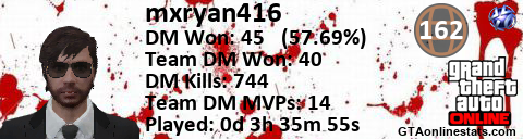 <a href="http://GTAonlinestats.com/showplayer/mxryan416"><img src="http://GTAonlinestats.com/dmsignature/mxryan416/sig.png" alt="mxryan416" border="0" /></a>