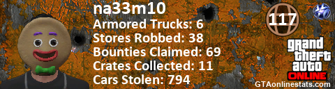 <a href="http://GTAonlinestats.com/showplayer/na33m10"><img src="http://GTAonlinestats.com/randomsignature/na33m10/sig.png" alt="na33m10" border="0" /></a>